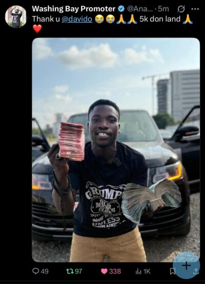 On Saturday, Ananzo Official confirmed receipt of the funds and thanked Davido for changing his life.