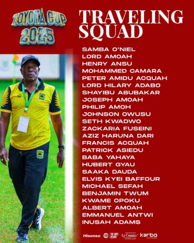 Newly appointed head coach of Asante Kotoko, Abdul-Karim Zito, has named a 25-man squad for the club’s trip to South Africa to face Kaizer Chiefs in the 2025 Toyota Cup.