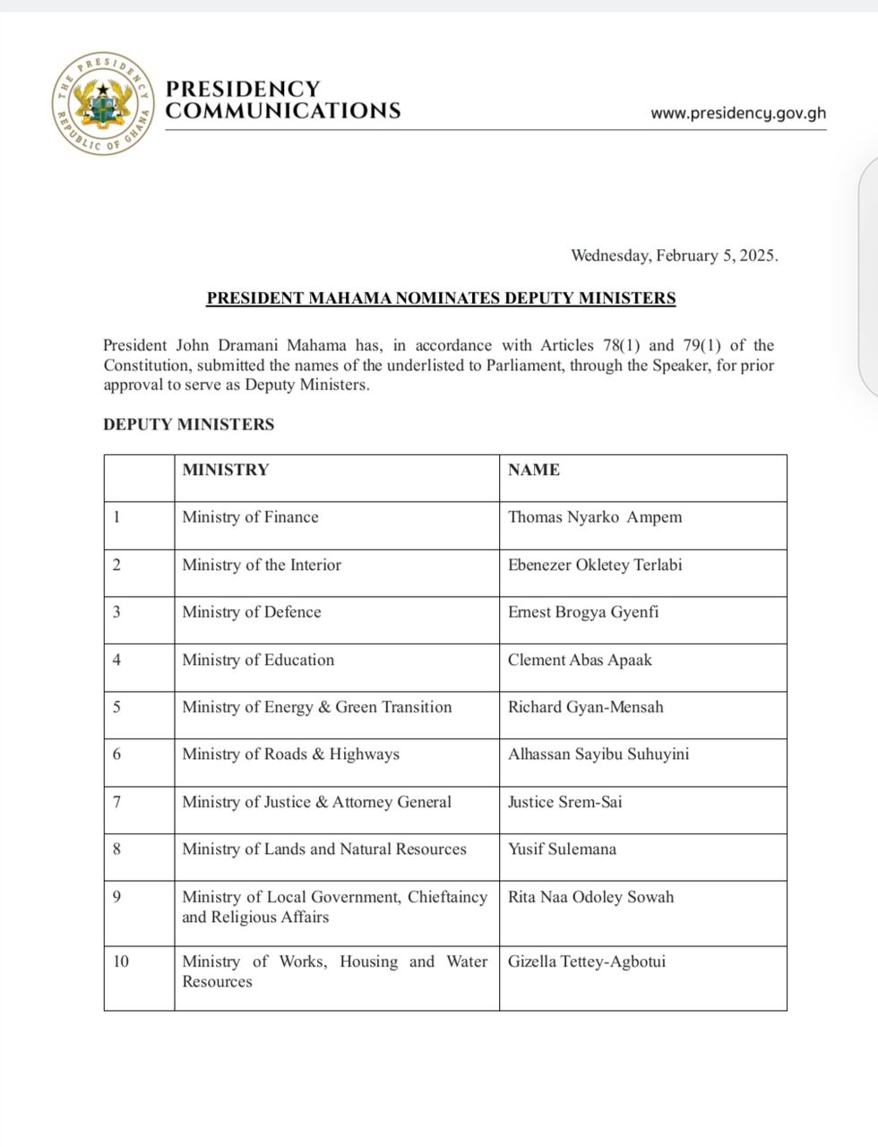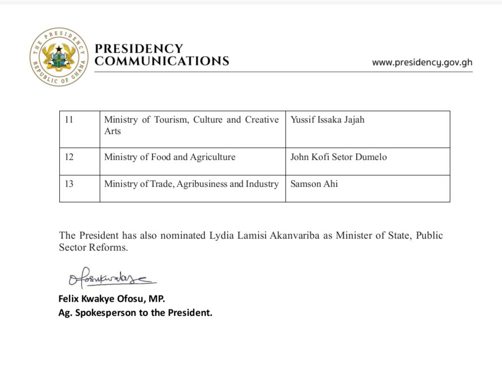 Along with Dumelo, 13 other people have been nominated to hold various deputy ministerial positions in the Mahama-Opoku-Agyemang administration.
