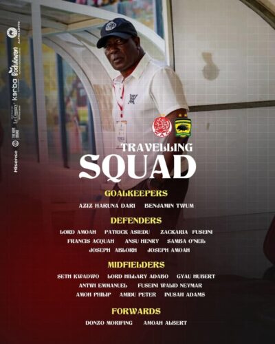 Asante Kotoko’s head coach, Karim-Zito, has named his squad for the trip to North Africa. The 20-man squad includes two goalkeepers: Aziz Haruna Dari and Benjamin Twum. Camara was red-carded in the first leg after handling Amrabat’s effort outside the 18-yard box.