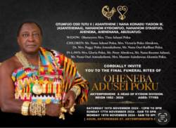 Chief Mourners: Offul Anona Royal Family of Apam, Ebusuapanyin Kofi Awotwe, Ebusuapanyin Kojo Otu, Ebusuapanyin Kofi Nertse of Nyanyano, Okyeame Kweku [...]