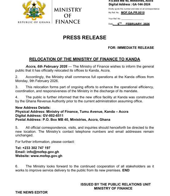 The relocation, according to the Ministry, is designed to improve coordination, efficiency, and responsiveness in the execution of its core responsibilities. It further clarified that the Kanda office complex was constructed by the Ghana Revenue Authority before the current government assumed office.