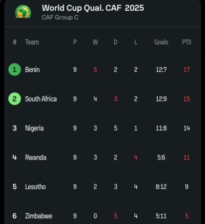 In other games in the group, Super Eagles won 2-1 against Lesotho to keep their slim hopes alive. After a disappointing goalless draw in the first half, the second half got off to a good start with Skipper William Trost-Ekong’s penalty in the 55th minute, ensuring that Eric Chelle’s Nigeria will take the lead. Sevilla’s forward Akor Adams added the all-important second goal in the 80th minute to put the game beyond the home side’s reach.