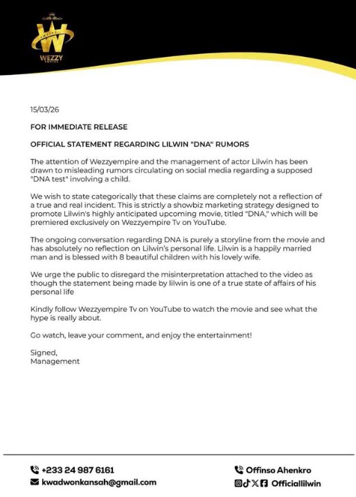 However, in an official statement issued by his management team, Wezzyempire, the actor dismissed the claims and clarified that the narrative was created solely for promotional purposes.