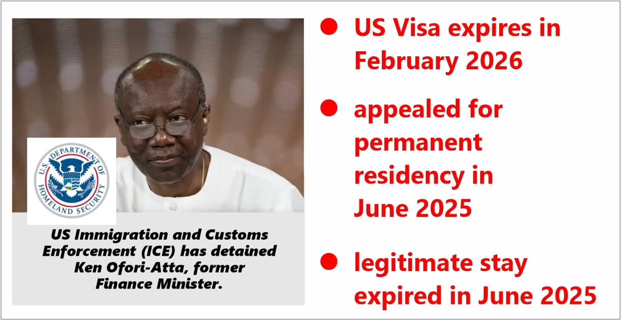 Ghana’s former Finance Minister, Ken Ofori-Atta, has been detained by the United States Immigration and Customs Enforcement (ICE) over issues related to his immigration status.
